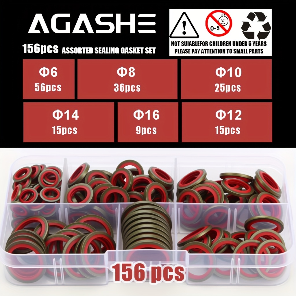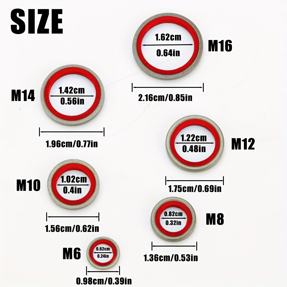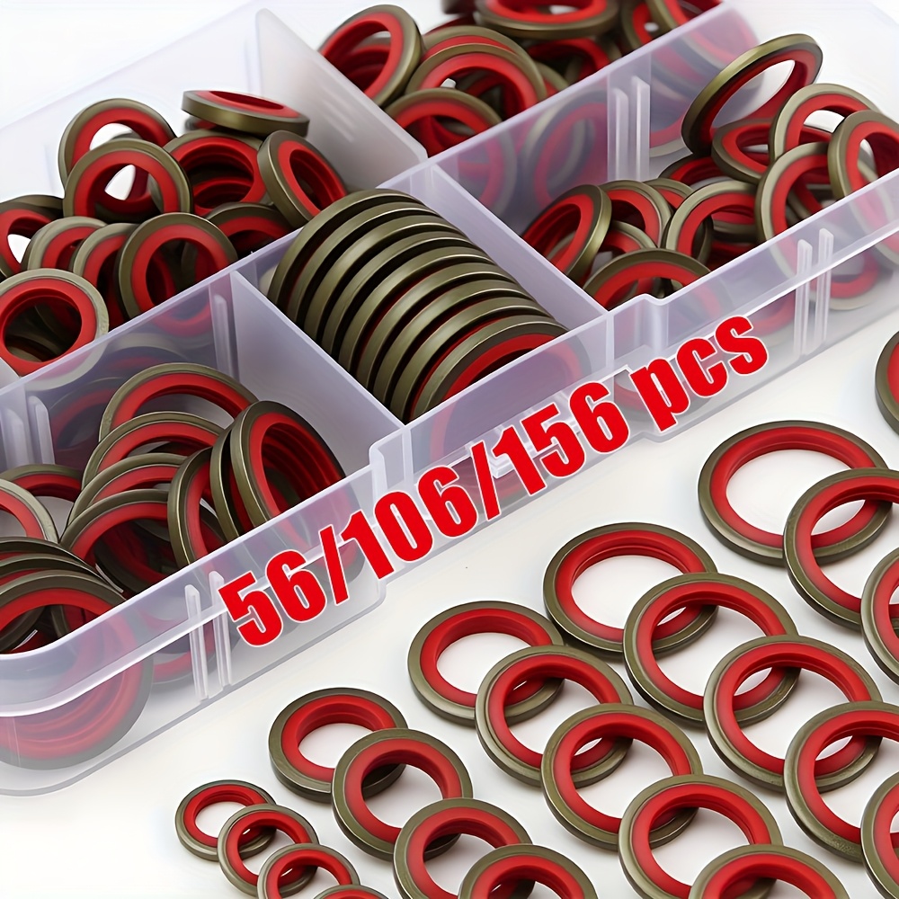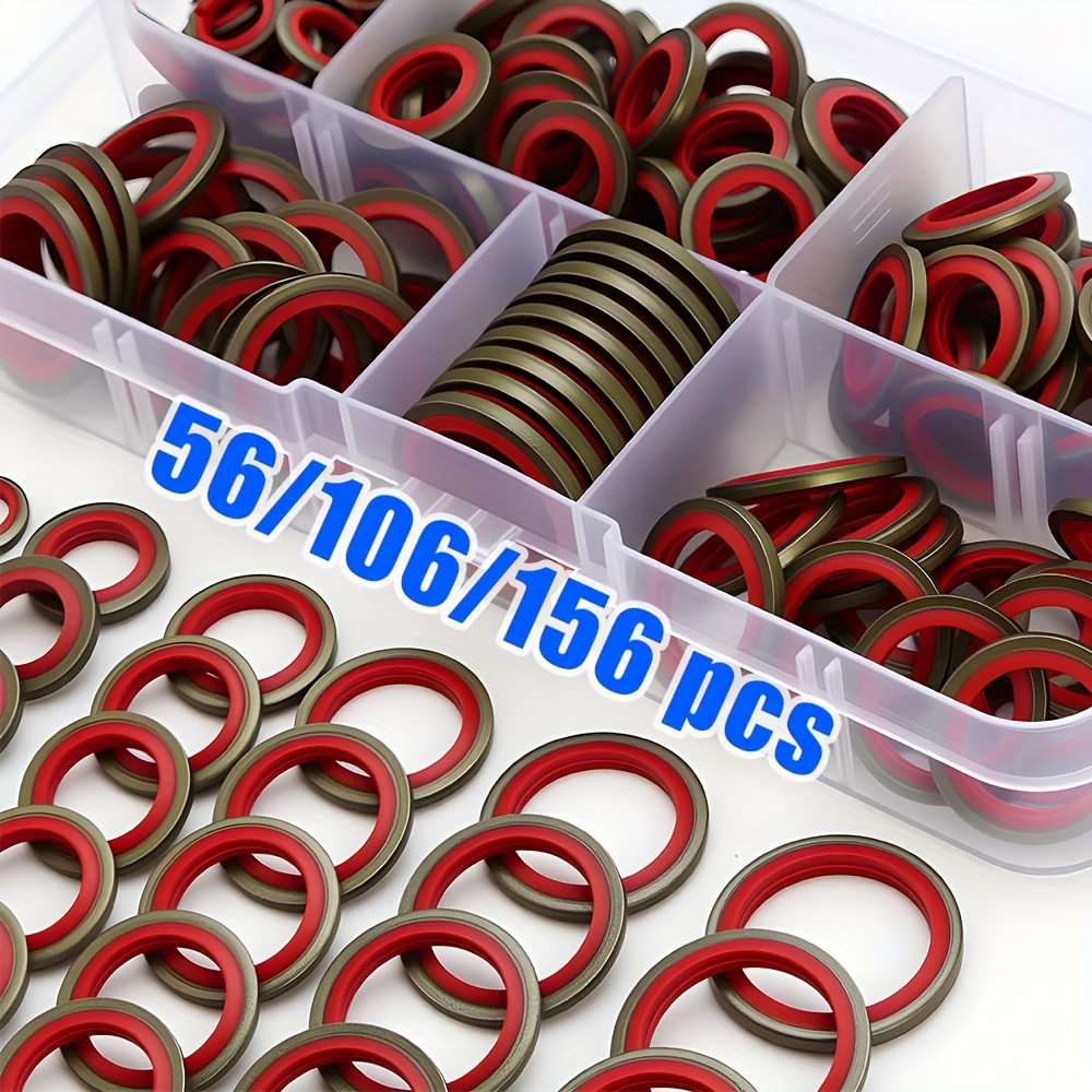 【156個/箱 or 106個/箱 or 56個/箱】カーオイルパン ドレンプラグ ゴム ドレインロック ゴム ドレンプラグ 交換可能 ウォッシャー シールキット M6 M8 M10 M12 M14 M16 NBR 金属 シーリングワッシャー ガスケット アソートメント | 高圧油圧、交換可能リングパッドセット, オイルドレンボルト, エンジンオイルコック