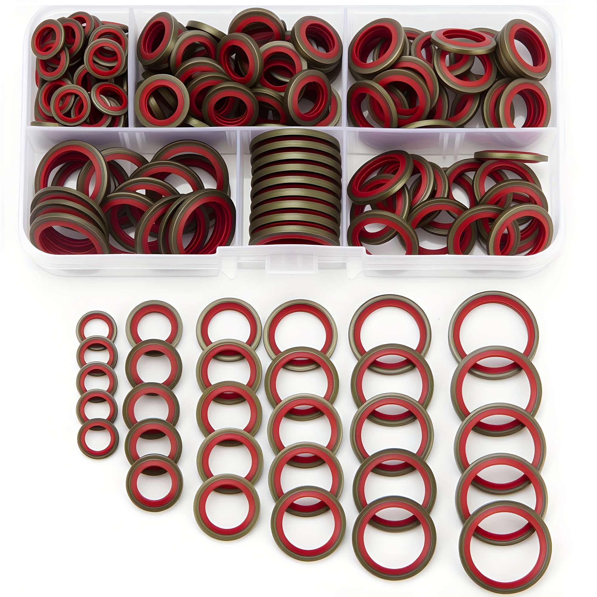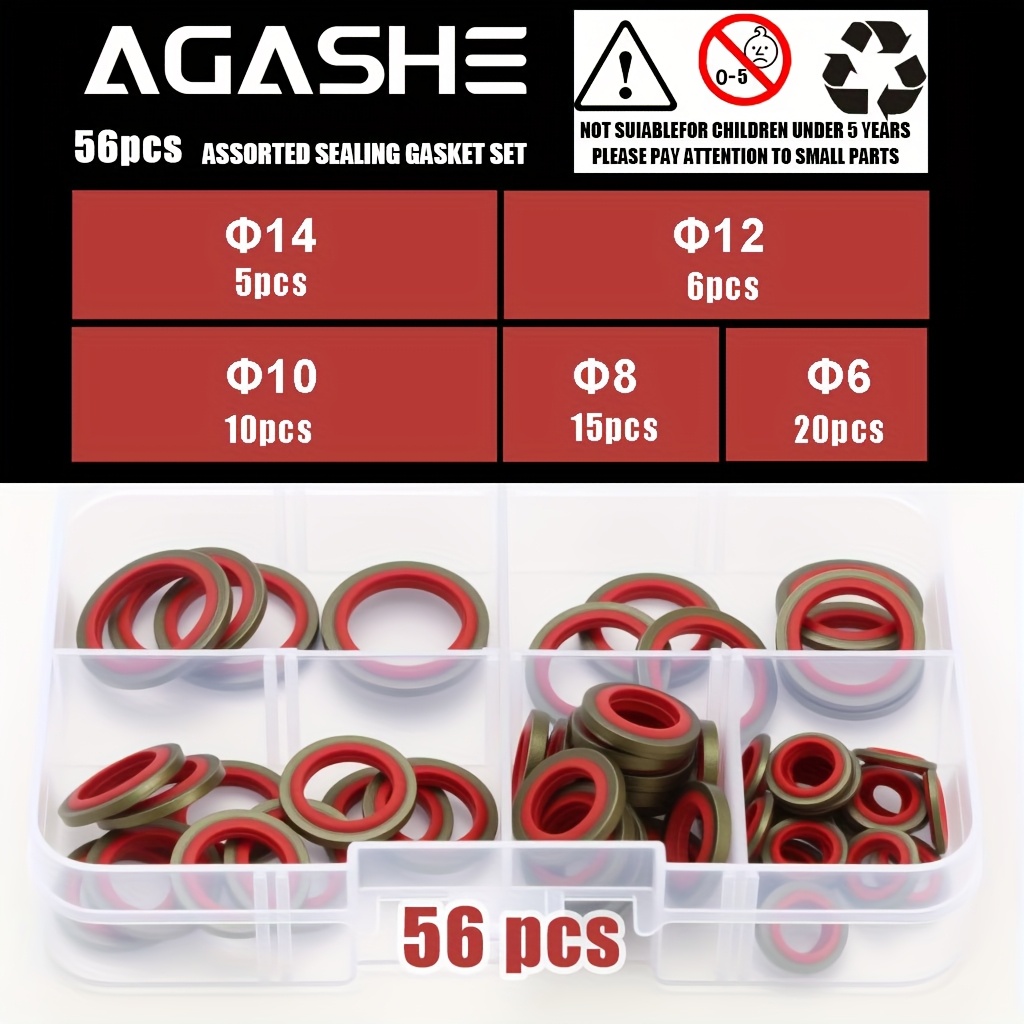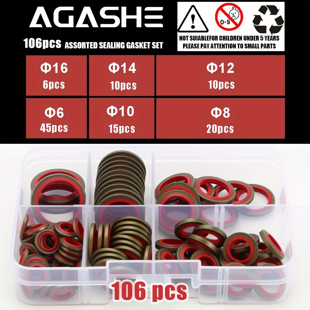 【156個/箱 or 106個/箱 or 56個/箱】カーオイルパン ドレンプラグ ゴム ドレインロック ゴム ドレンプラグ 交換可能 ウォッシャー シールキット M6 M8 M10 M12 M14 M16 NBR 金属 シーリングワッシャー ガスケット アソートメント | 高圧油圧、交換可能リングパッドセット, オイルドレンボルト, エンジンオイルコック